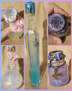 Maak je eigen toverdranken, kies de kleur en glitter en verzegel met gesmolten was. Wil je er nog een kettinkje omheen dan kies je zilver, goud of brons. Ook ontwerp je je eigen label🔮